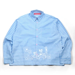 Long-sleeve shirt with a boxy cut, button-up closure, and front chest pocket.