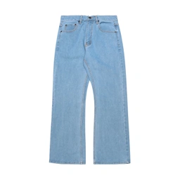 Loose-fit light blue denim pants in a classic washed tone. Built with five-pocket styling, orange contrast stitching, and finished with a bold THXNSMN DESIGN® woven patch at the back waist.