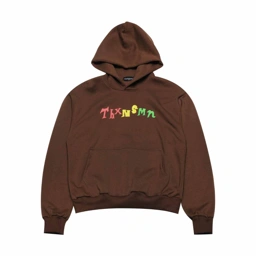 Hoodie with rubber foam print. Pullover style with front pocket and hood.