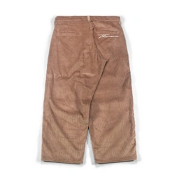 Super baggy corduroy pants feature a relaxed fit with wide legs and an embroidered logo. The classic five-pocket design includes front and back pockets, as well as a small coin pocket for added convenience.