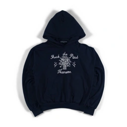 Hoodie with rubber foam print. Pullover style with front pocket and hood.