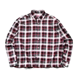 Boxy flannel shirt with classic collar, single chest pocket, and button closure.