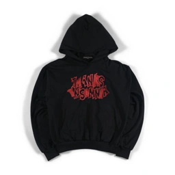 Hoodie with plastisol screen print. Pullover style with front pocket and hood.