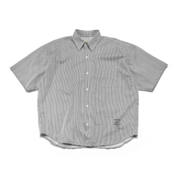 A short-sleeve shirt constructed from lightweight woven cotton fabric. Features a loose fit silhouette with a front button closure and a single chest pocket. Material: Cotton Poplin