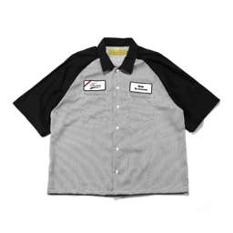 Short-sleeve work shirt featuring dual chest pockets and button closure.