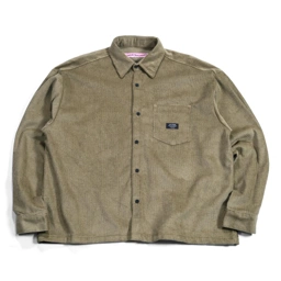 Long-sleeve shirt with a boxy cut, button-up closure, and front chest pocket.