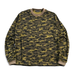 Regular Fit Olive camouflage long sleeve featuring light grey accents on the collar and cuffs. Designed with a subtle mix of olive, grey, and dark brown tones, offering a clean and versatile look with a comfortable fit.