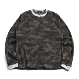 Regular Fit Olive camouflage long sleeve featuring light grey accents on the collar and cuffs. Designed with a subtle mix of olive, grey, and dark brown tones, offering a clean and versatile look with a comfortable fit.