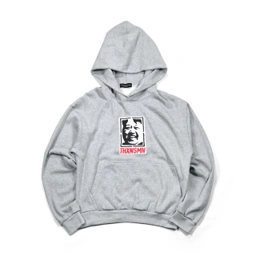 Hoodie with plastisol screen print. Pullover style with front pocket and hood.