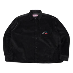 A relaxed boxy fit shirt made from soft corduroy fabric. Features a front button closure, chest pocket with embroidery and a classic collar.