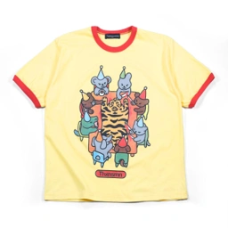 Short sleeve t-shirt with boxy fit. Features colorful front graphic and contrast rib on collar and sleeves. Made from cotton fabric. Suitable for daily wear.