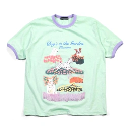 Short sleeve t-shirt with boxy fit. Features colorful front graphic and contrast rib on collar and sleeves. Made from cotton fabric. Suitable for daily wear.