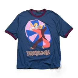 Short sleeve t-shirt with boxy fit. Features colorful front graphic and contrast rib on collar and sleeves. Made from cotton fabric. Suitable for daily wear.