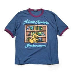 Short sleeve t-shirt with boxy fit. Features colorful front graphic and contrast rib on collar and sleeves. Made from cotton fabric. Suitable for daily wear.