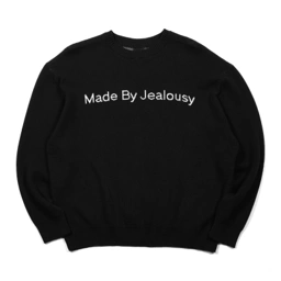Crew neck knit sweater with long sleeves. Features ribbed collar, cuffs, and hem.
