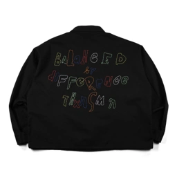 Heavyweight black cotton twill utility jacket with a functional four-pocket system and a sharp boxy silhouette. Material: Twill