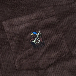 A relaxed boxy fit shirt made from soft corduroy fabric. Features a front button closure, chest pocket, and a classic collar.