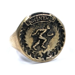 Forged from brass, this unisex ring highlights the beauty of detailed craftsmanship.