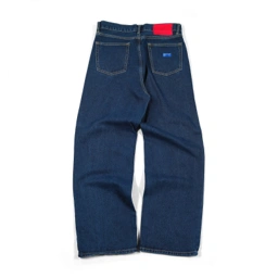 Back pocket finished with signature blue label.