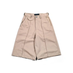 Jorts with front pleats. Two front pockets and two back pockets. Button waist and zipper fly construction.