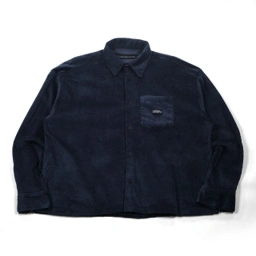 A relaxed boxy fit shirt made from soft corduroy fabric. Features a front button closure, chest pocket, and a classic collar.