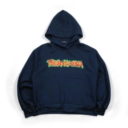 Hoodie with plastisol screen print. Pullover style with front pocket and hood.