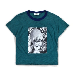 Fitted women’s t-shirt with a body-contouring silhouette. Features a front graphic print as the main design element.