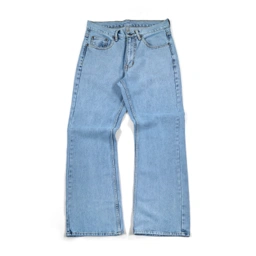 Bootcut denim pants with a relaxed silhouette, contrast stitching, and classic five-pocket construction.