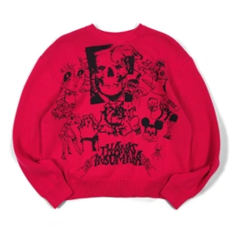 Crew neck knit sweater with long sleeves. Features ribbed collar, cuffs, and hem.