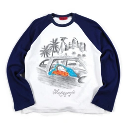 Long sleeve with raglan sleeve construction. Front graphic. Ribbed collar. Label detail on neck. Material: Waffle
