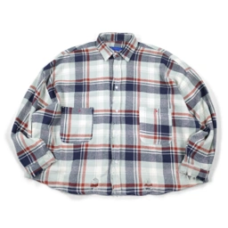 Flannel shirt with plaid pattern, oversized fit, and boxy cut.