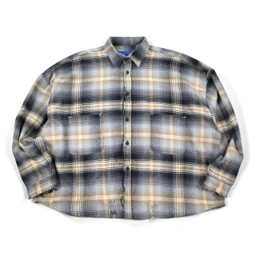 Flannel shirt with plaid pattern, oversized fit, and boxy cut.