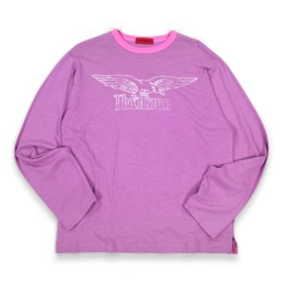 Long sleeve t-shirt with washed finish and front graphic print. Features rib collar and contrast neckline.